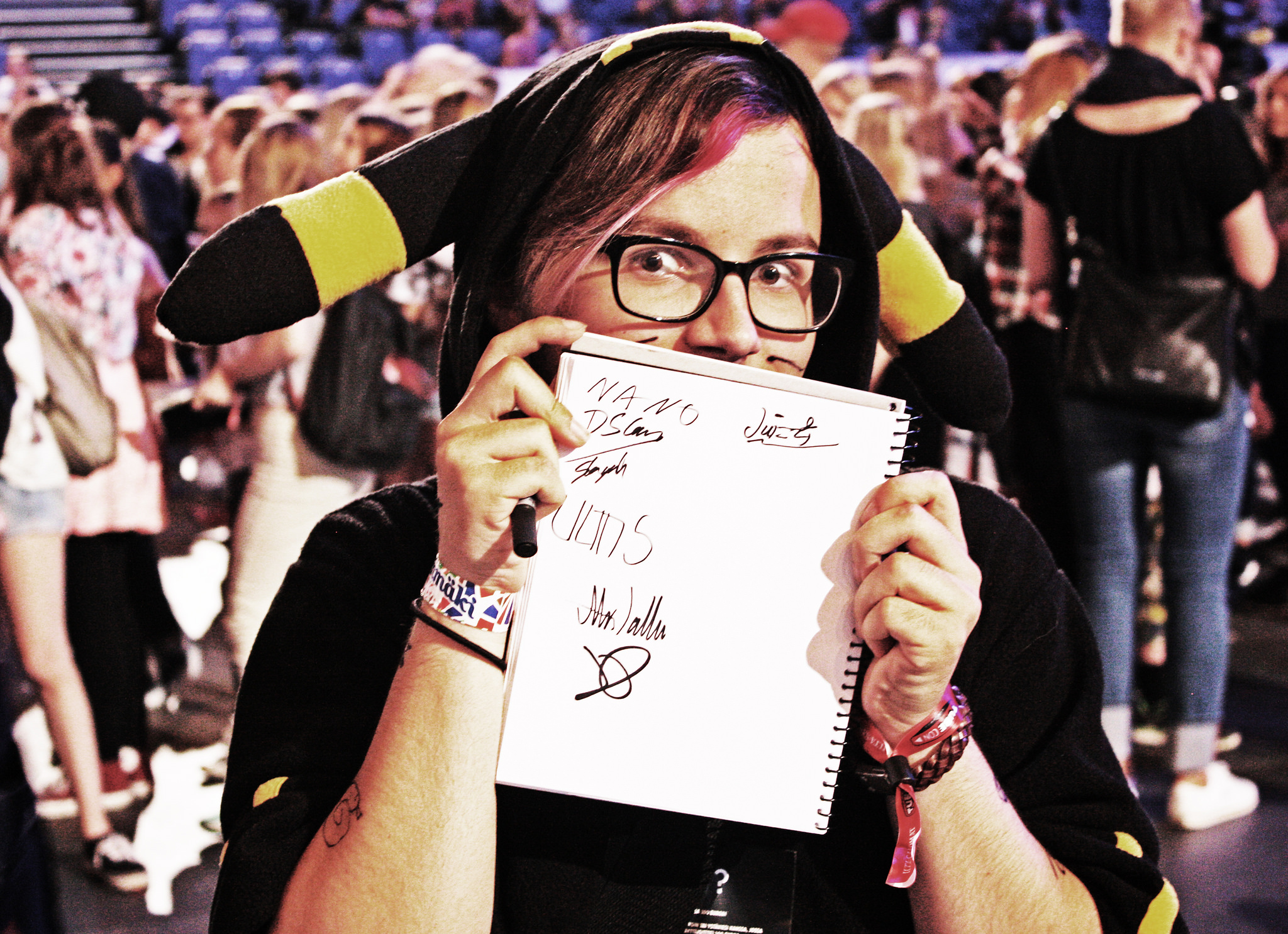 Previous Image Next Image Santeri, a gaming videos fan, at Tubecon 2015 Santeri (17) is into gaming videos, mainly. Showing a notebook filled in with autographs, he admits that watches YouTube videos for around 24 hours per week.